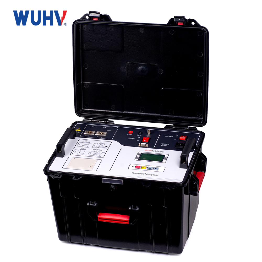 UHV-340 Transformer Tan Delta Tester is a kind of instrument with high precision fully automatic measuring the dielectric loss tangent and capacitance of various high voltage electrical equipments in the power plants and substations. The adoption of frequency conversion technology could ensure the accurate measurement in the interference of strong electric field.